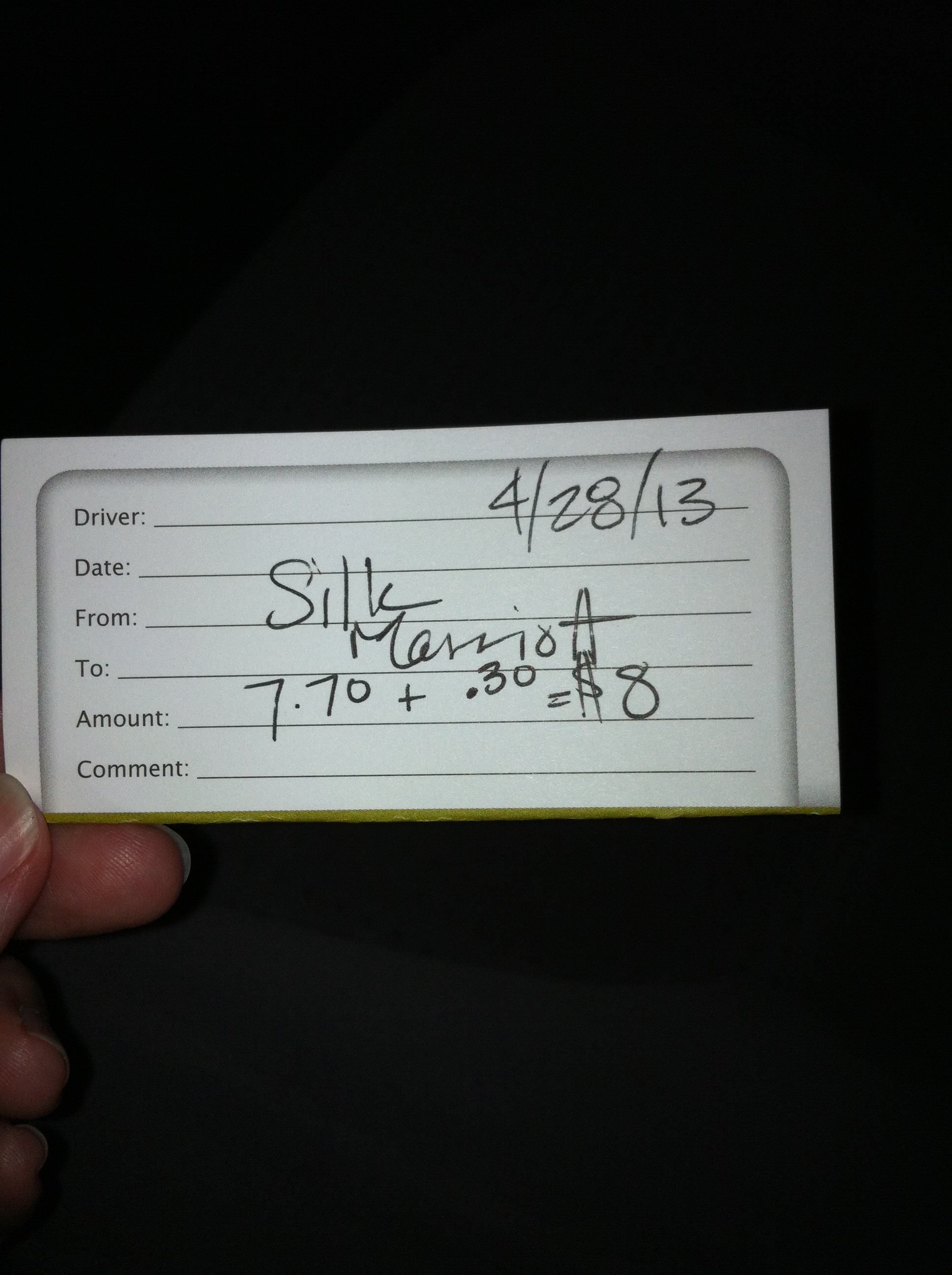 Nothing stings like someone telling you they’ll be reimbursed, and then they still don’t tip. I made sure to write exactly how much he was tipping his driver and also his pick-up. Seriously dude? You’re going to try to get the children’s hospital to pay for your ride home from the strip club? Considering how oblivious he was, he just might turn it in with his other travel receipts.
